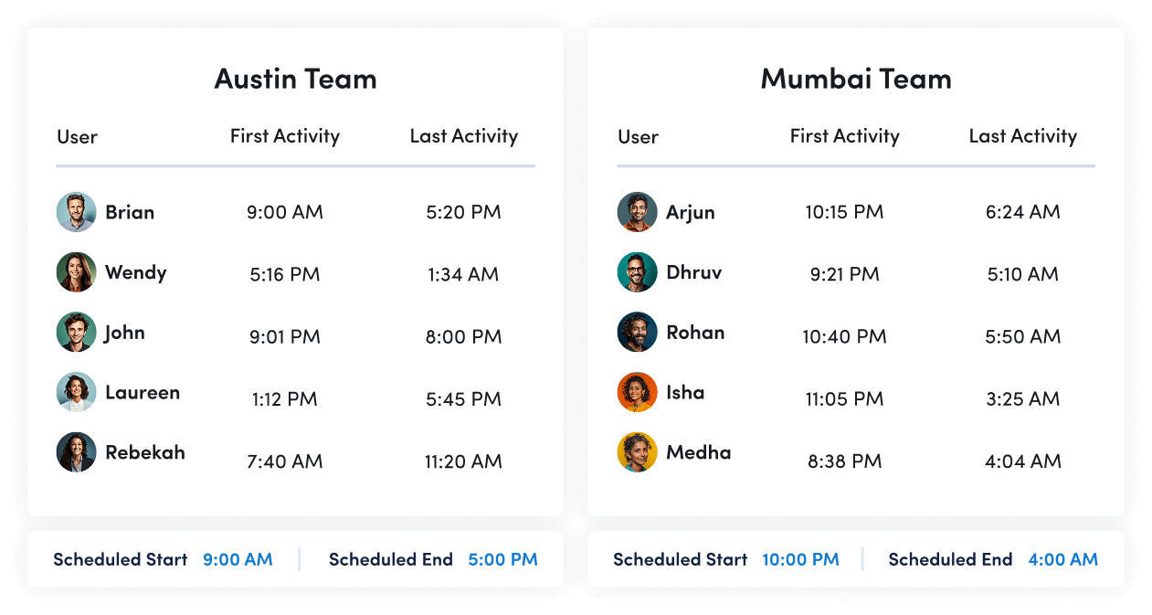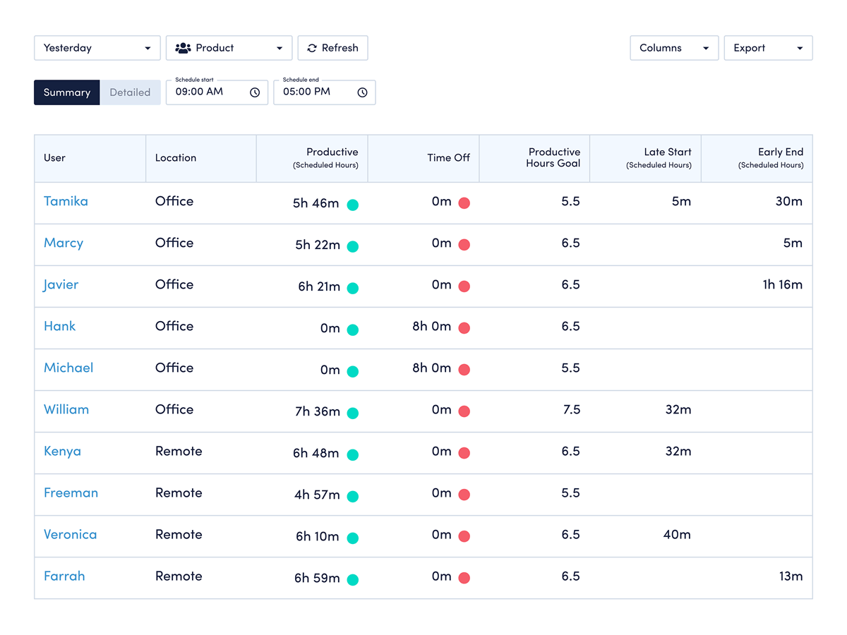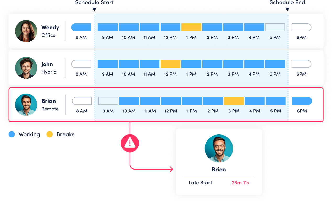 Monitor daily work activity to ensure shift coverage and enforce schedule adherence. No manual oversight required.