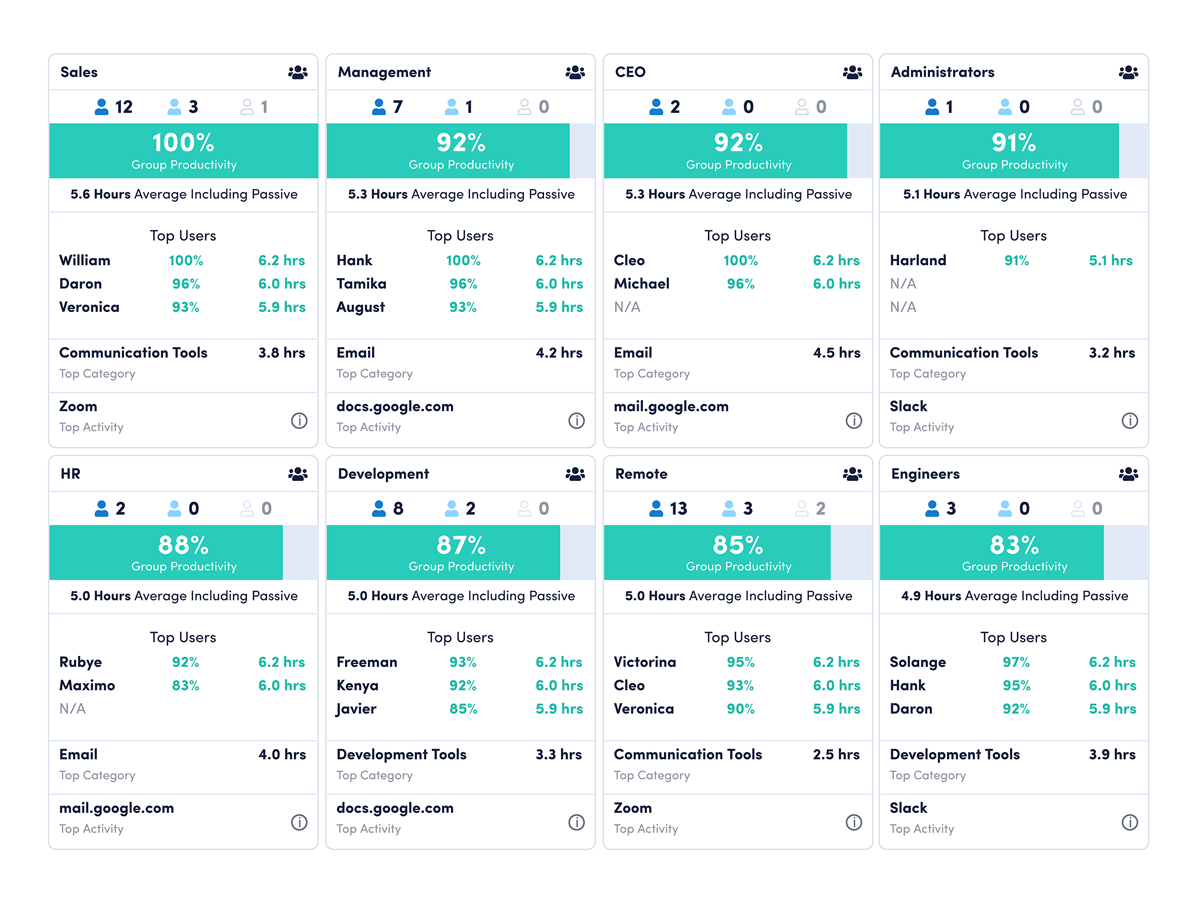 Get real-time visibility into team activity and productivity levels.