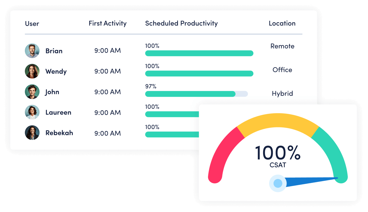 Assess productivity drivers, engagement levels and work habits through intuitive dashboards and AI-powered reports.